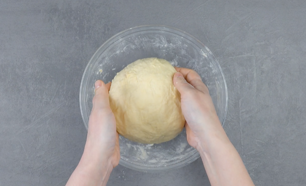 1. Gib das Mehl in eine Schüssel und auf dessen Mitte Zucker und Hefe. Verteile auf dem Rand des Mehls außerdem Salz. Füge Milch und Butter hinzu und verknete alles zu einem geschmeidigen Teig. Lasse den Teig abgedeckt ca. 60 Minuten an einem warmen Ort gehen.