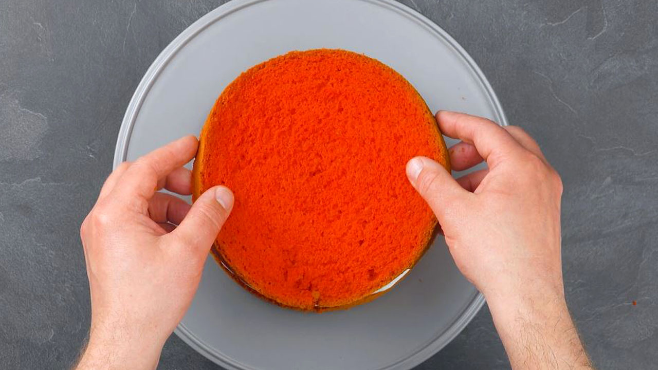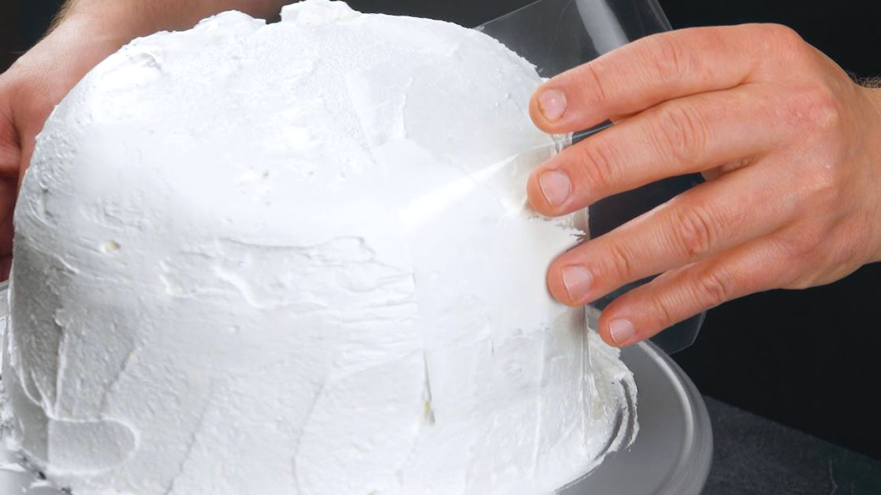 8. Forme den Kuchen mithilfe der Plastikfolie zu einer glatten Halbkugel.