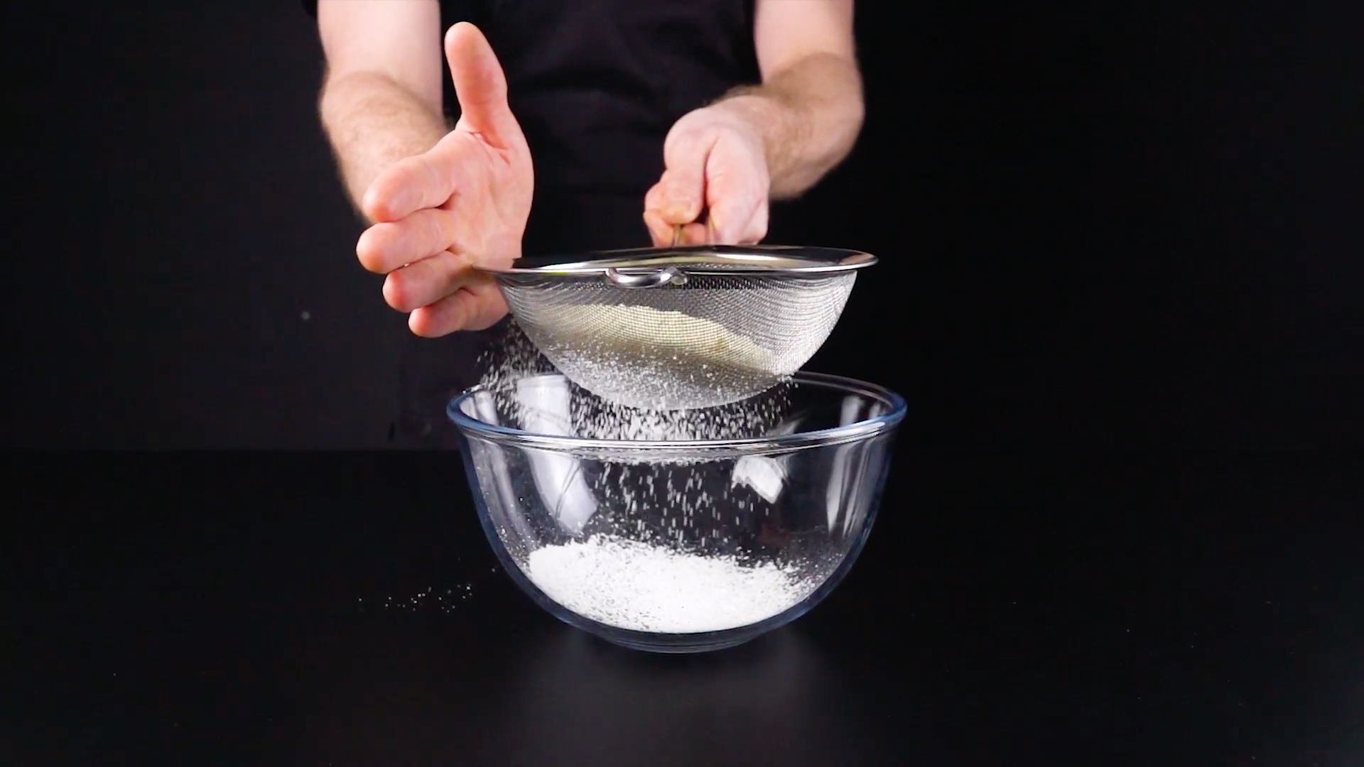 • 300 g Puderzucker, in 4 Portionen je 75 g