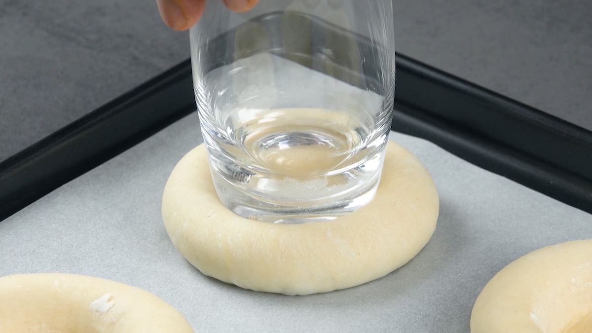 So geht es: 1. Verknete alle Zutaten für den Hefeteig miteinander und lasse den Teig anschließend für etwa 1 1/2 Stunden abgedeckt gehen. Knete den Teig dann erneut durch, teile ihn in 6 gleich große Stücke und lege diese auf ein Blech. Drücke dann mit einem Glas eine Mulde in jedes Teigstück. Tipp: Drücke den Glasboden in Mehl, bevor du damit Mulden in den Hefeteig drückst, so bleibt der Teig nicht am Glas kleben.