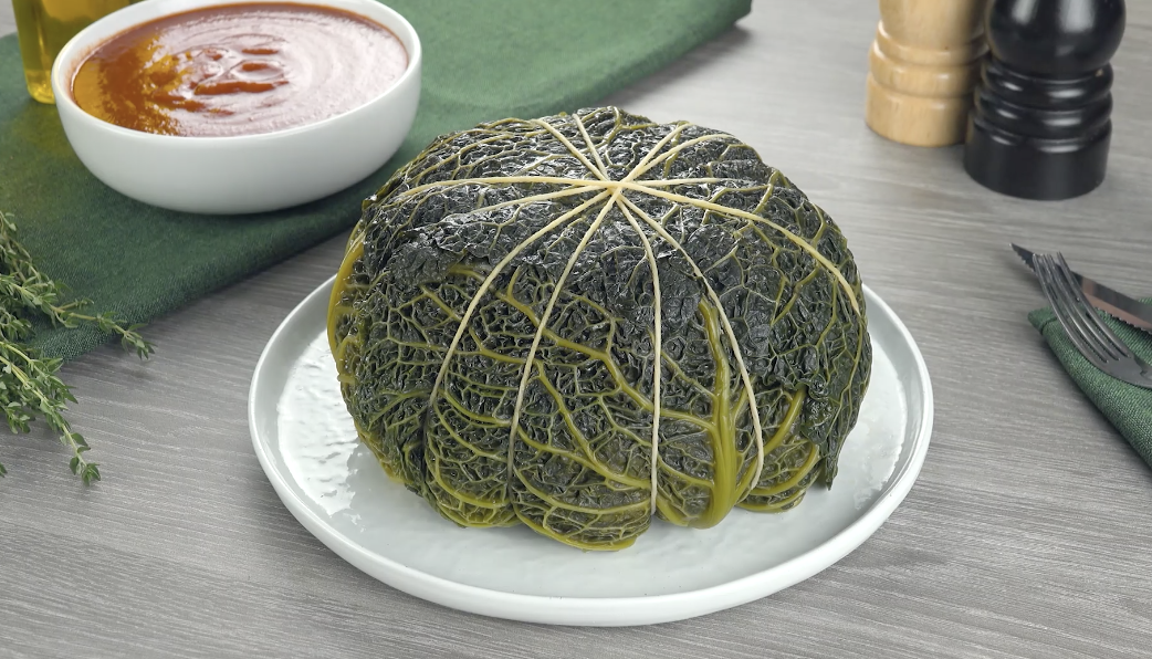 Wirsing ist ein völlig unterschätzter Gemüsekohl, der bei einigen viel zu selten auf den Tisch kommt. Dabei sind die Möglichkeiten ziemlich vielseitig. Folgendes Rezept zeigt dir, wie kreativ man einen Wirsingkohl zubereiten kann. Wir füllen den Wirsing mit Hackfleisch, Gemüse und Kräutern und verpacken ihn am Ende mit Bratenschnur, sodass er vor dem Servieren aussieht wie ein Kürbis. Nur eben in Grün. Dafür brauchst du: