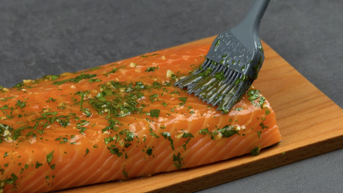 3.) Bestreiche den Lachs nun mit der Marinade.