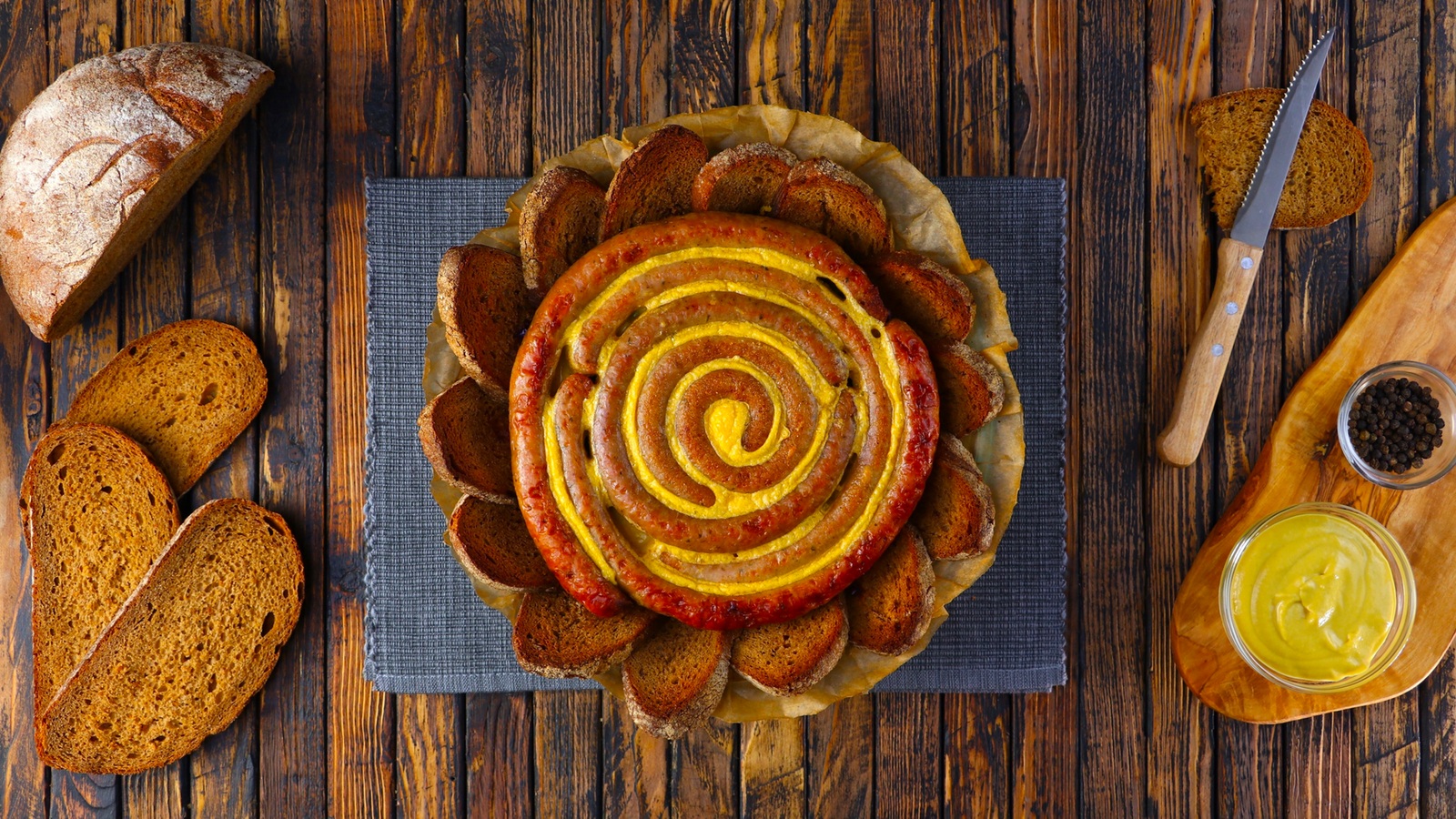 7.) Bratwurstschnecken-Tarte Auf den ersten Blick mag man die Kartoffeln vermissen, aber die Bratwurstschnecke wurde auf Brot- und Kartoffelscheiben gebettet. Hier findest du das vollständige Rezept.