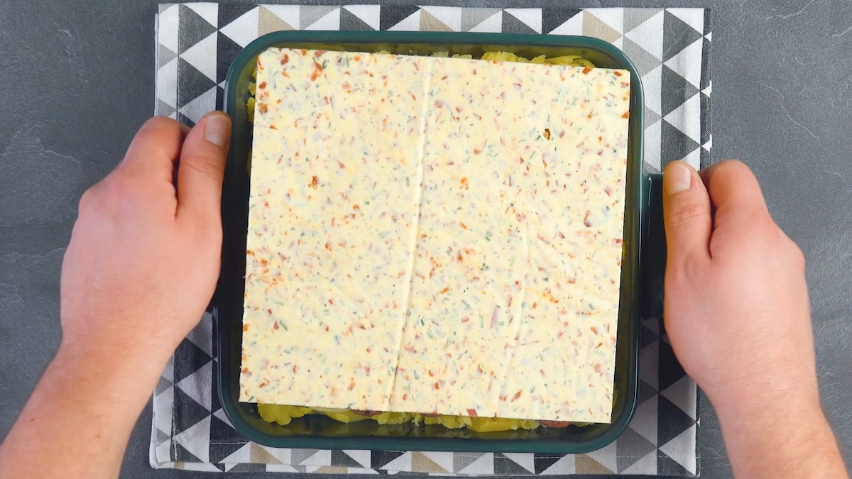8. Backe den Kartoffel-Hack-Auflauf dann für 35 Minuten bei 170 °C Umluft.