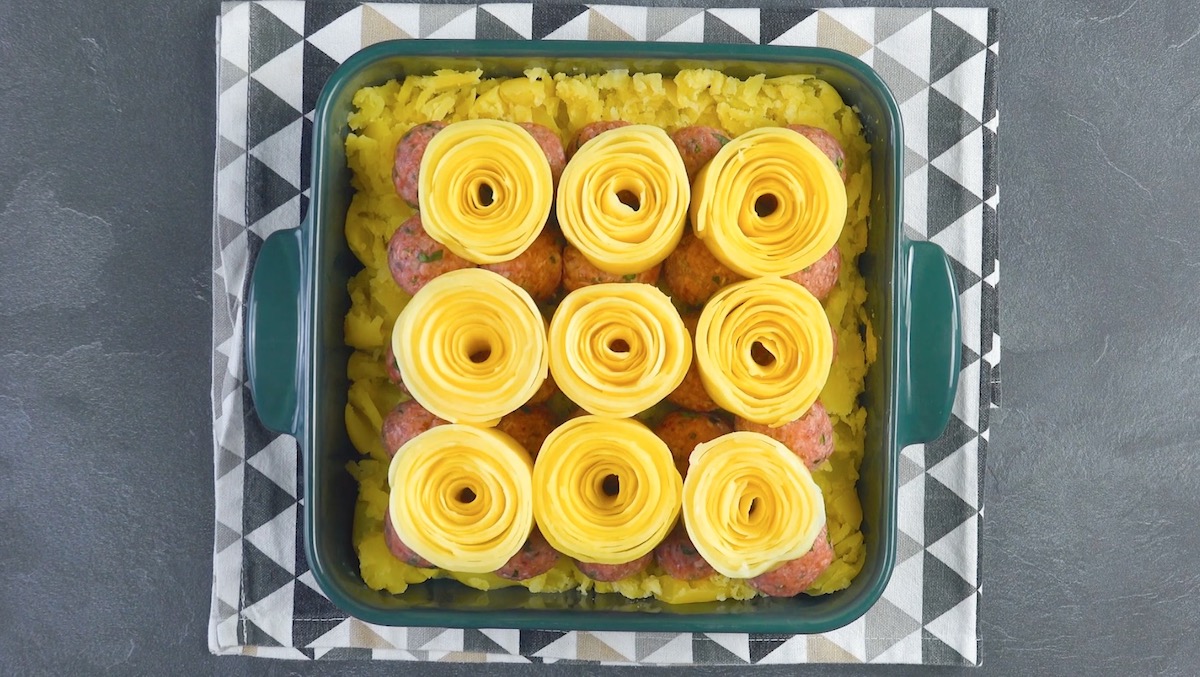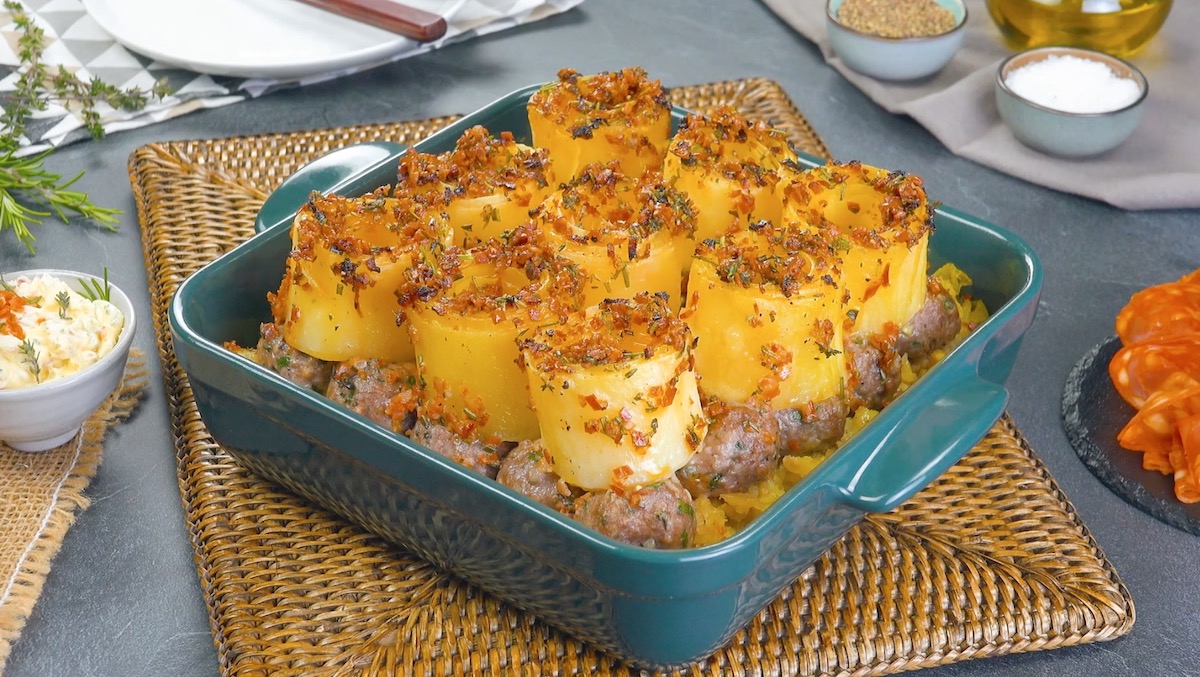 Dieser Kartoffel Hack Auflauf ist wegen seiner hübschen Kartoffelrollen, seiner leckeren Hackbällchen sowie seiner würzigen Chorizo Butter wahrlich etwas ganz Besonderes – probiere ihn aus!