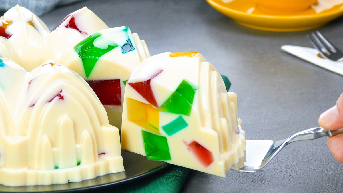 Dieses Kunstwerk aus vier Sorten Götterspeise und einer fruchtigen Ananascreme ist ideal für einen unvergesslichen Kindergeburtstag. Aber auch Erwachsene werden sich in ihre Kindheit zurückversetzt fühlen und diese Wackelpudding-Nascherei lieben. Das Ergebnis ist fast schon zu hübsch, um verputzt zu werden.