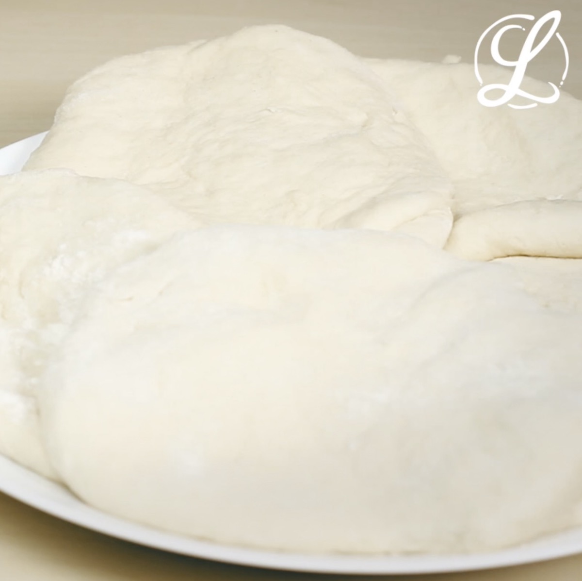 2.) Teile den Teig nun in kleinere Portionen auf und forme aus diesen kleine Fladen.
