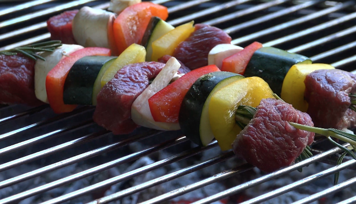 Diese Idee ist genial! Nimm anstatt normaler Holzspieße einfach Rosmarinzweige. So bekommen die Spieße zusätzlich ein leckeres Rosmarin-Aroma.