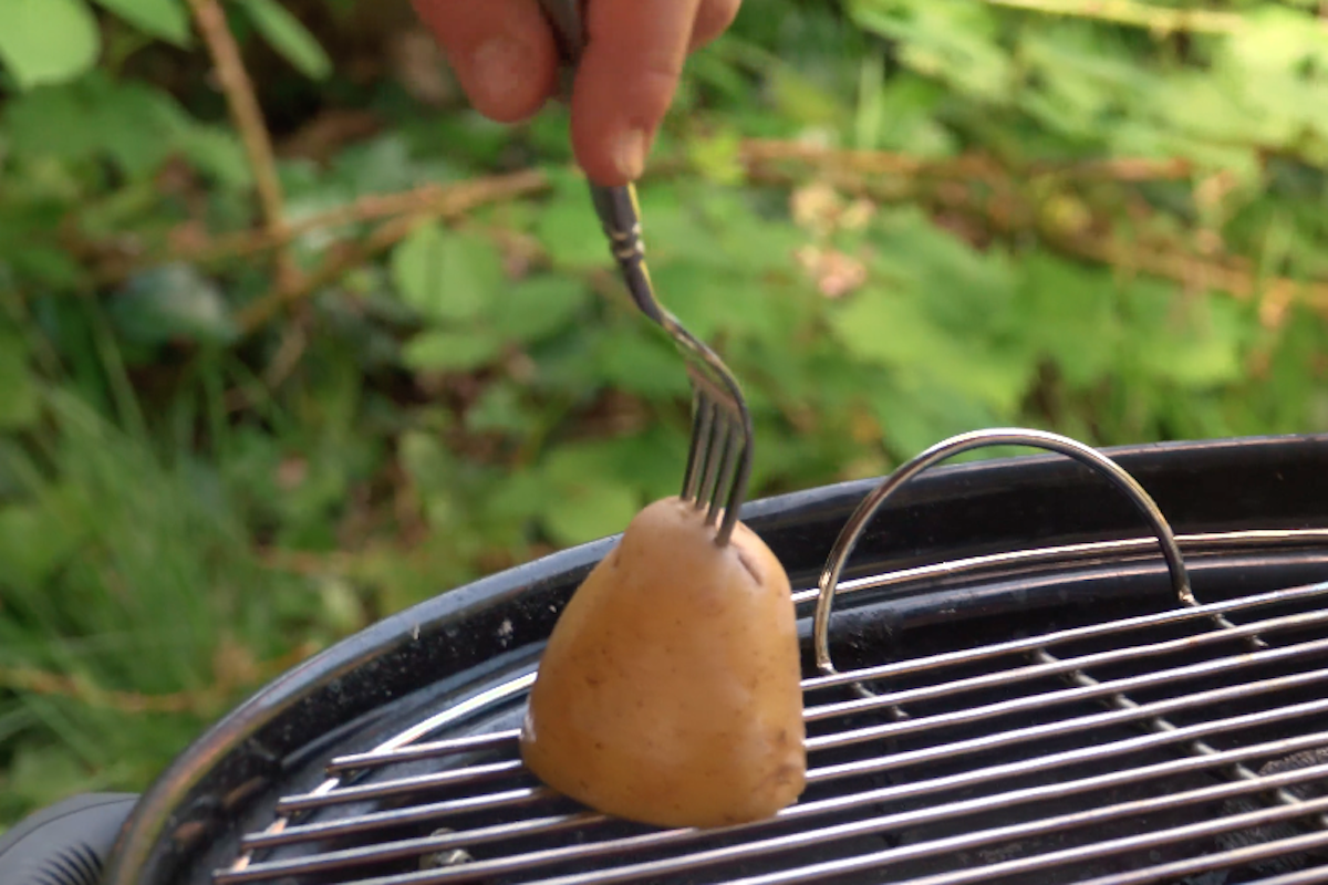 Mit diesem Trick verhinderst du, dass das Fleisch auf dem Grillrost kleben bleibt. Halbiere eine Kartoffel und stich mit einer Gabel in eine der Hälften. Reibe dann den heißen Grillrost mit der Schnittfläche der Kartoffel ein. Die Hitze entzieht der Kartoffel Stärke, die auf dem Rost eine Art Antihaftbeschichtung erzeugt. Jetzt kann das Fleisch vor sich hin brutzeln, ohne dass es auf dem Rost kleben bleibt.