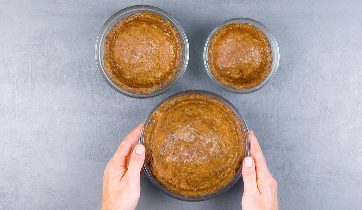 1. Vermische alle Zutaten für das Hackfleisch miteinander und schmecke die Mischung mit Salz und Pfeffer ab. Fette die Schalen dann mit Öl ein, teile die Hackfleischmasse auf die Schalen auf und drücke sie an den Rändern an. Backe das Hackfleisch dann für 30-40 Minuten bei 180 °C Umluft. Lass die Hackfleischschalen anschließend abkühlen.