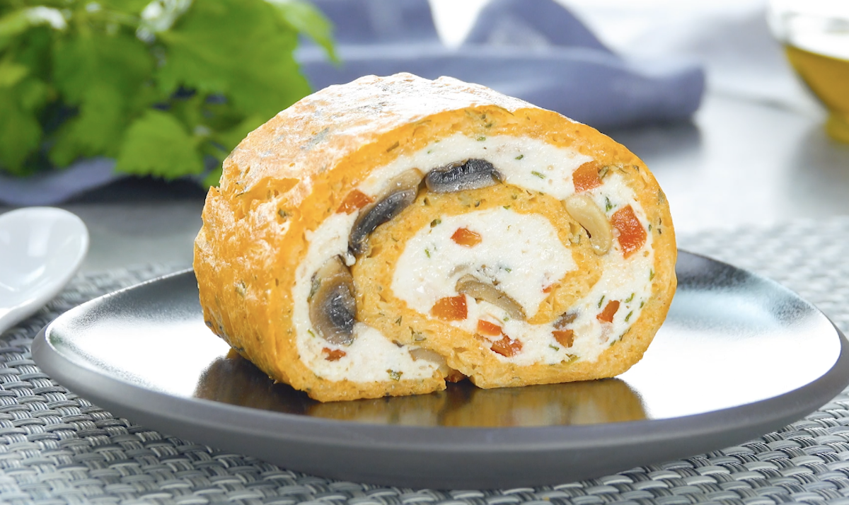 Diese Rolle ist eigentlich nichts anderes als ein gerolltes Omelett mit einer Füllung aus Hähnchenfleisch, Frischkäse und Gemüse. Ein einfaches Rezept, das aber mit Geschmack und Aussehen überzeugt. Dafür brauchst du:
