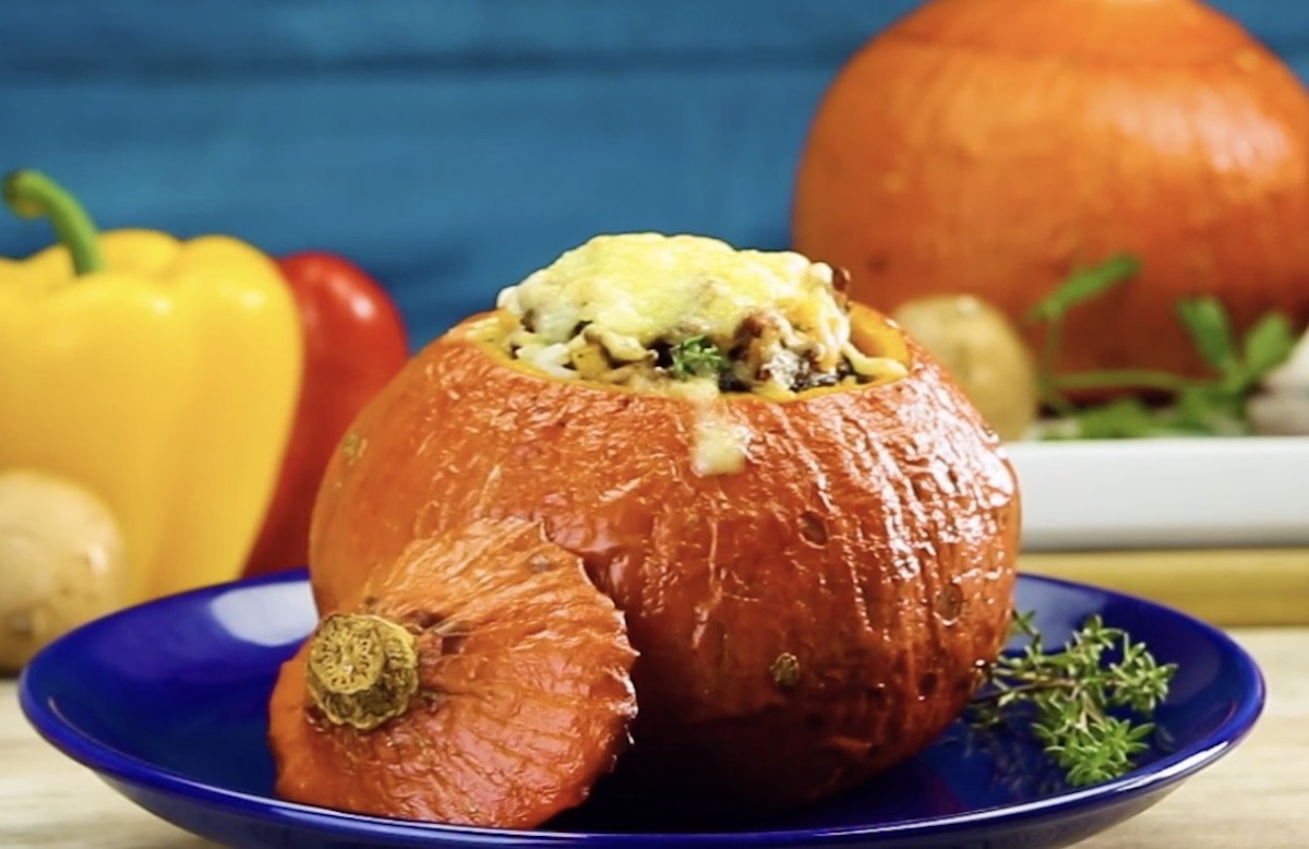 Egal, ob als Suppe, Gnocchi oder Auflauf: Kürbis macht einfach in jedem Rezept eine gute Figur. Doch hast du schon einmal versucht, einen Kürbis zu füllen? Wenn du dich jetzt fragst, womit ein Kürbis am besten gefüllt wird, haben wir die Antwort: mit einer würzigen Mischung aus Hackfleisch, Reis und Paprika.