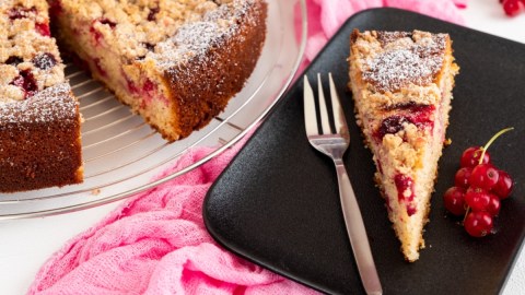 - Bestreue den Johannisbeerkuchen vor dem Servieren mit Puderzucker.