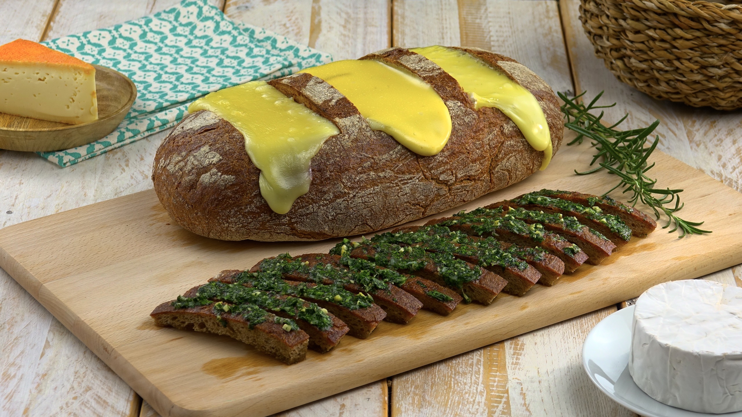 Überzeuge dich hier davon, ob dieses Dreikäsebrot auch ein Dreikäsehoch ist.