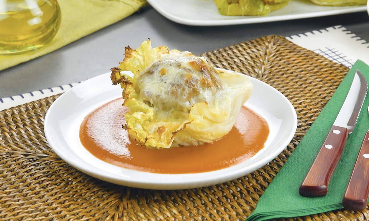Wir lieben Wirsing! Dieser grüne Kohlkopf ist ein ganz wunderbares und gesundes Produkt, mit dem man herrlich kreative Rezepte zubereiten kann. Heute zeigen wir dir, wie man in einer Muffinform mit Käse gefüllte Hackbällchen zubereitet. Und weil uns das an Käse noch nicht reicht, überbacken wir das Ganze auch noch mit Käse. Dazu servieren wir eine sämige Tomatensahnesoße.