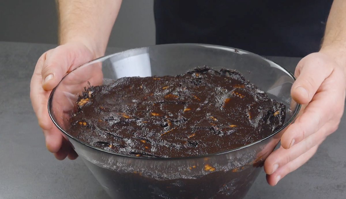 6. Gib den Teig in die Schüssel und achte darauf, dass die kleine Schüssel an ihrem Platz bleibt. Stelle alles über Nacht kalt.