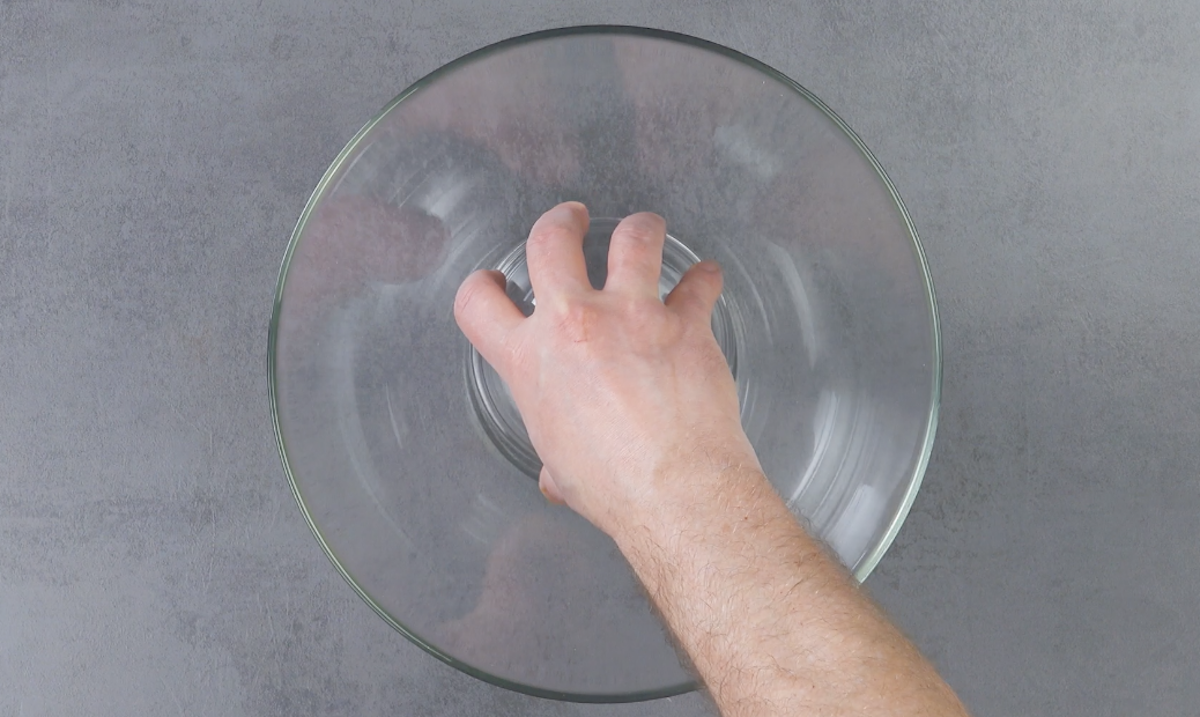 5. Lege nun die kleine Glasschüssel mit der Öffnung nach unten in die große Glasschüssel.