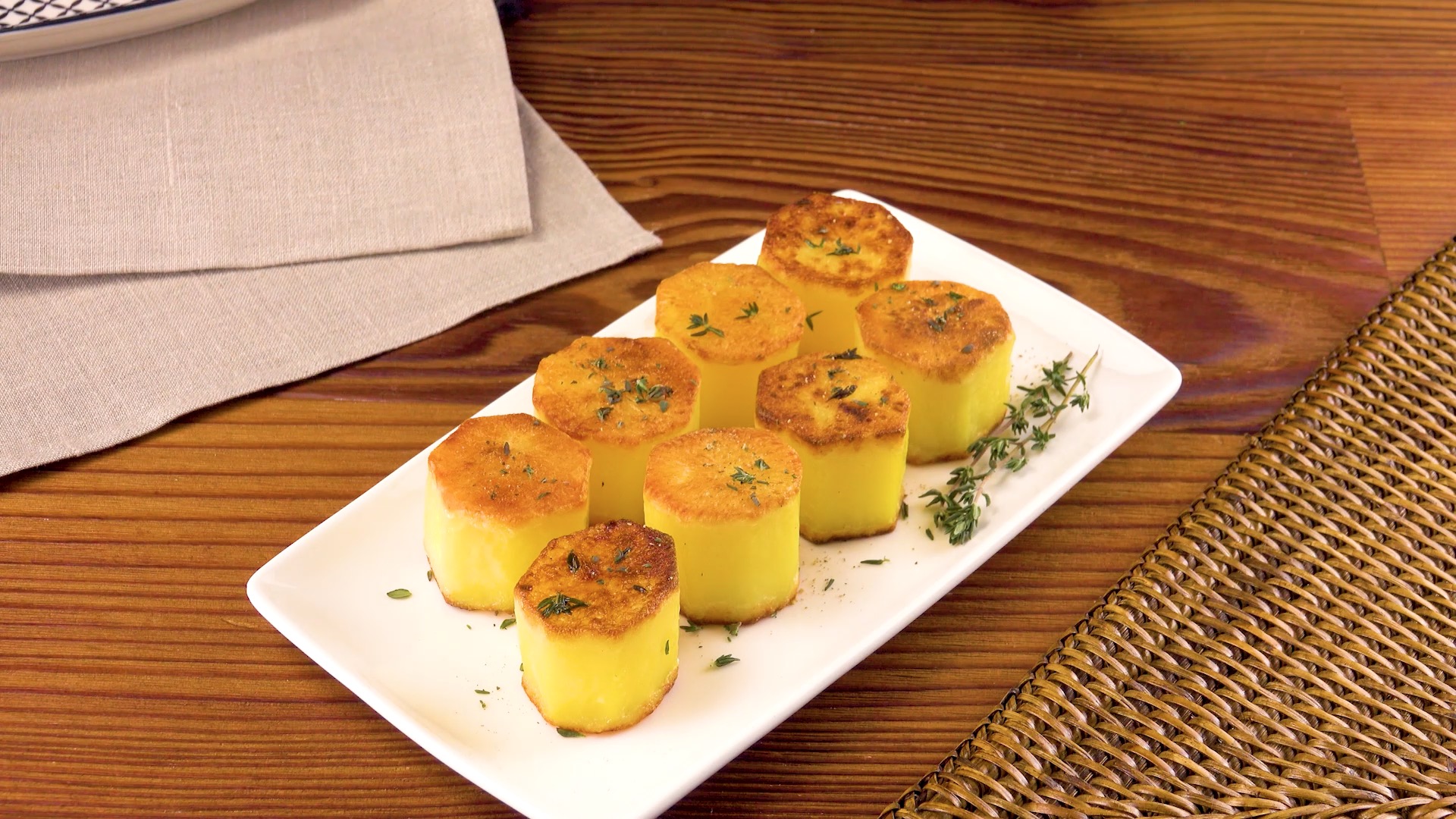 1. Schäle die Kartoffeln, wie im Video zu sehen, zu mehr oder weniger zylindrischen oder rechteckigen Blöcken.