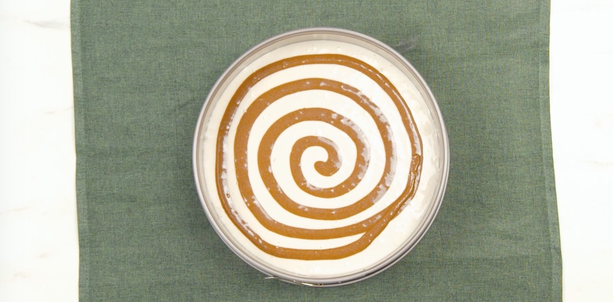 6. Bedecke diese Teigspirale wiederum mit etwas vom Kakaoteig.