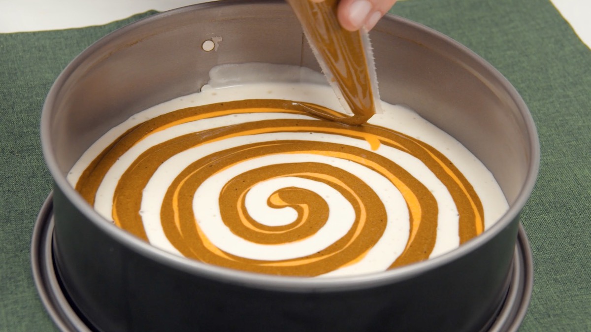 4. Spritze nun in einer Spirale etwas vom Kakaoteig darüber.