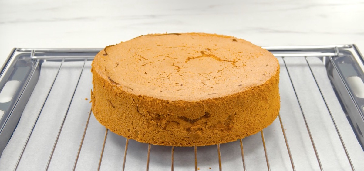 8. Wiederhole die Schritte, bis drei Spiralschichten entstanden sind und bedecke die letzte Spirale erneut mit Eiweißteig. Backe den Leopardenkuchen für 50 Minuten bei 170 °C Ober-/Unterhitze. Lass ihn anschließend abkühlen.