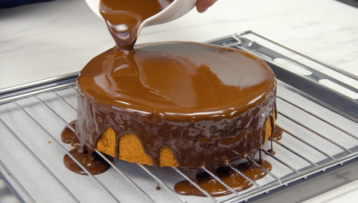 Tipp: Gieße die Schokoglasur vorher durch ein Sieb, um sie noch feiner zu machen.