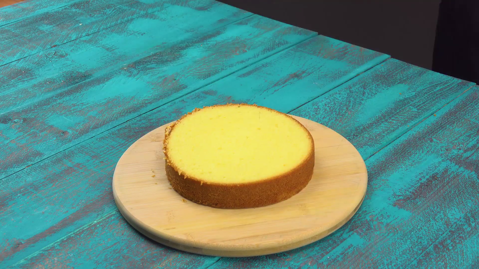 Hole den Kuchen aus der Springform und halbiere ihn horizontal.
