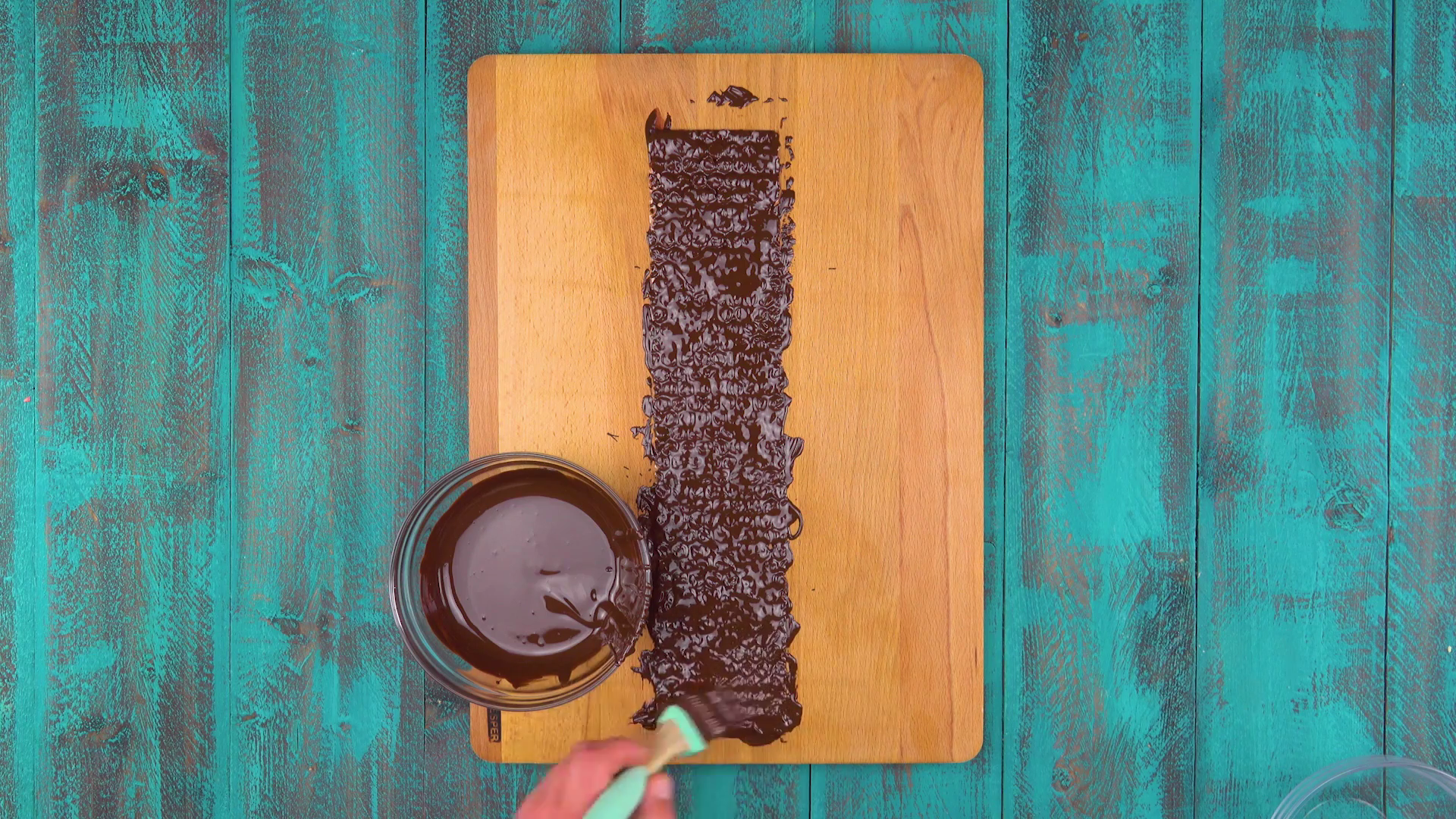 Sobald die Schokolade vollständig ausgehärtet ist, ziehe die Folie vorsichtig ab.