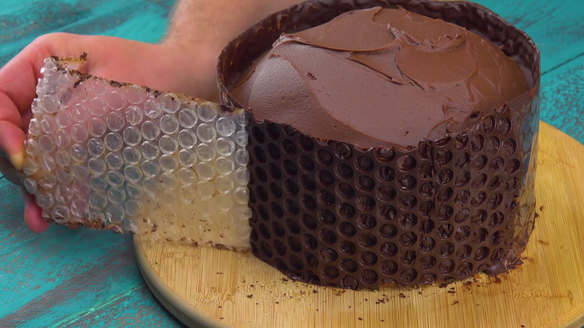 Du musst nun sehr stark sein. Für dieses Rezept brauchst du zwar ein Stück Luftpolsterfolie, aber du musst die Finger von den Bläschen lassen. Deren kleine, pralle Rundungen brauchst du dringend, um diesem Kuchen eine besondere Optik zu verleihen. Also lass artig die Griffel von ihnen! Vielleicht machen wir bei einem einzelnen Pölsterchen ein ganz kleines Ausnähmchen. Aber nur eines! Plopp! Das war gut, oder?