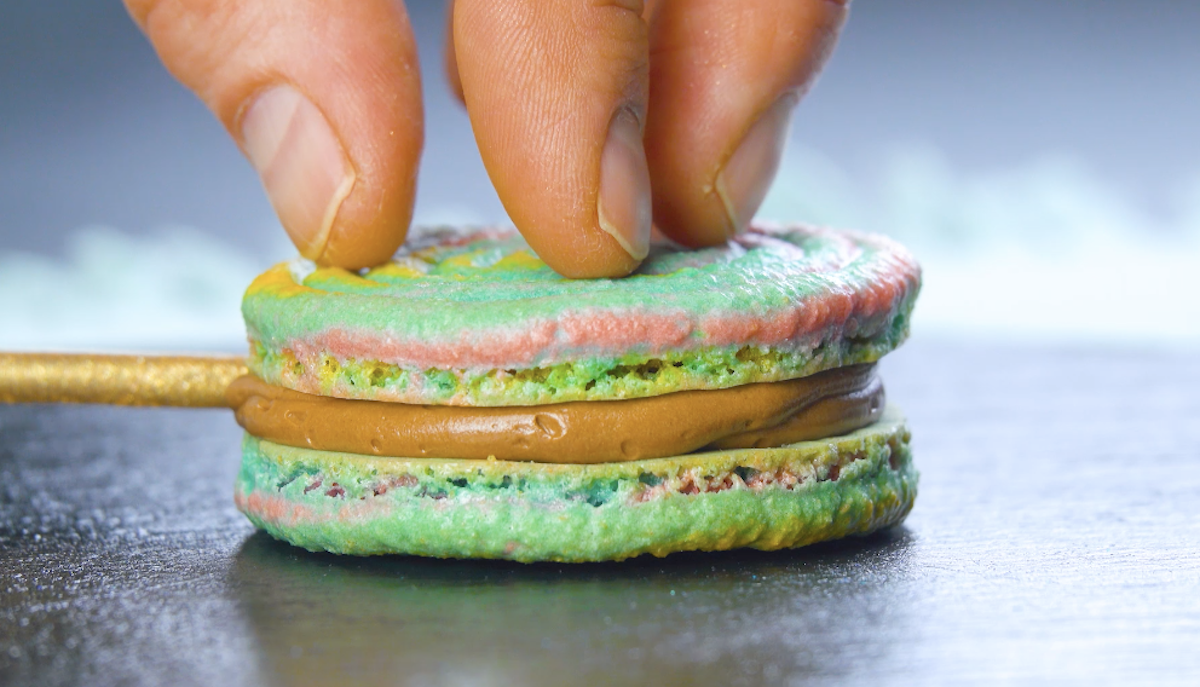 Macarons am Stiel | Buntes Baisergebäck mit Schokocreme