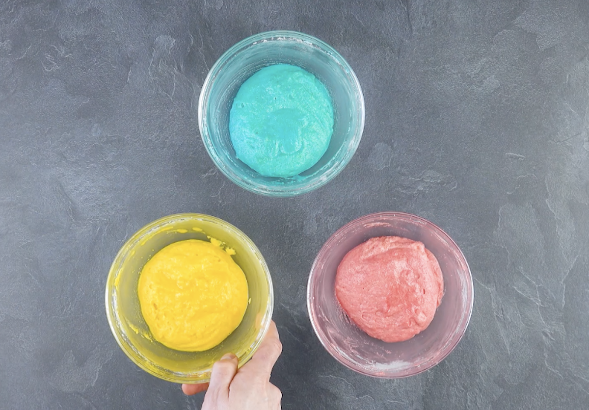• Lebensmittelfarbe in Gelb, Rosa und Hellblau
