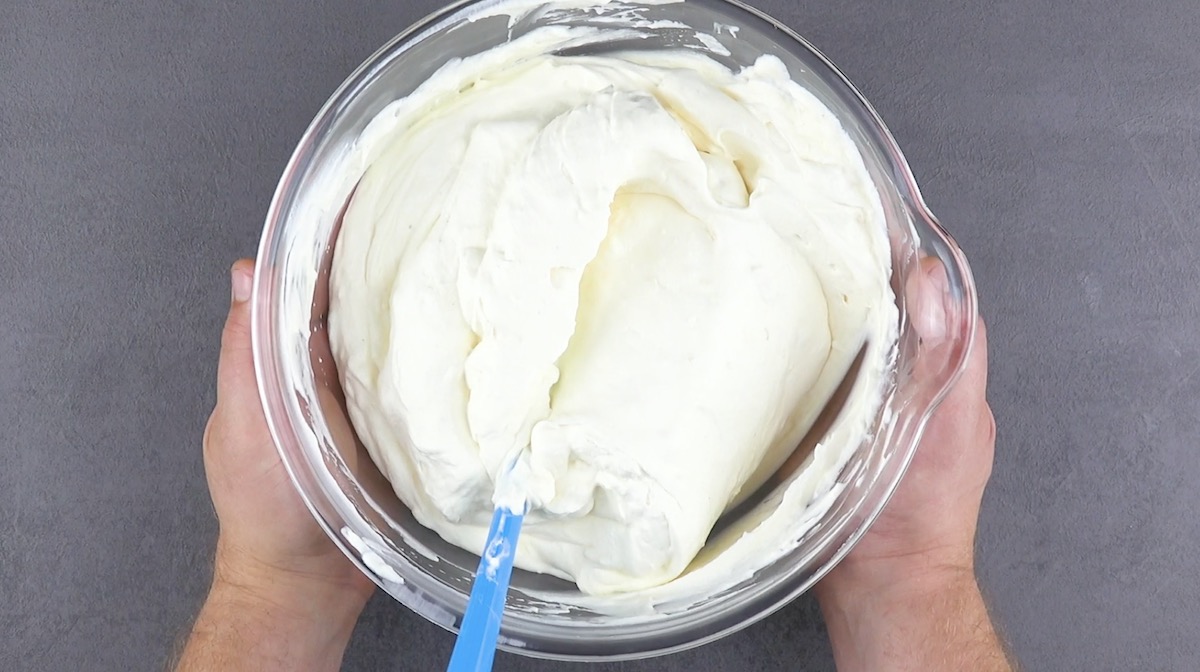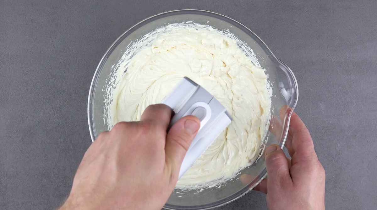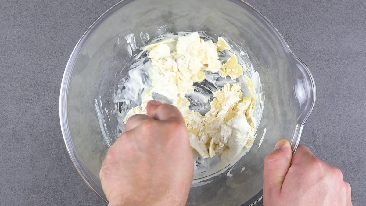 3.) Verrühre Frischkäse, Zucker und Vanillearoma mit der zerdrückten Eismasse.