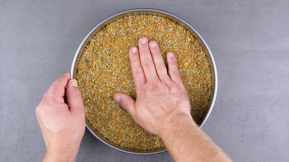 5.) Verteile die Masse auf dem Krümel-Boden in der Springform.