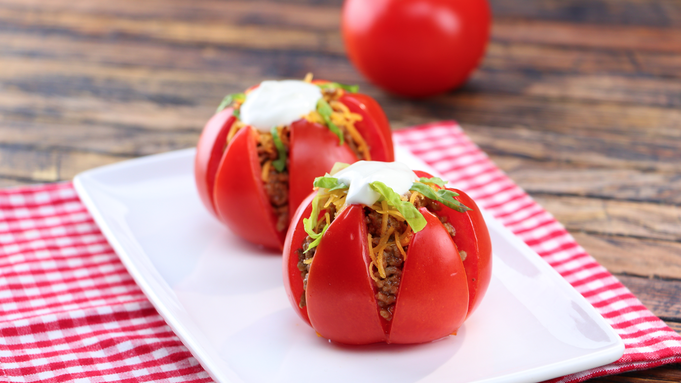 Frisch und fruchtig geht es mit diesen gefüllten Tomaten her. Dieser Link führt zum Rezept und zur herzhaften Füllung.