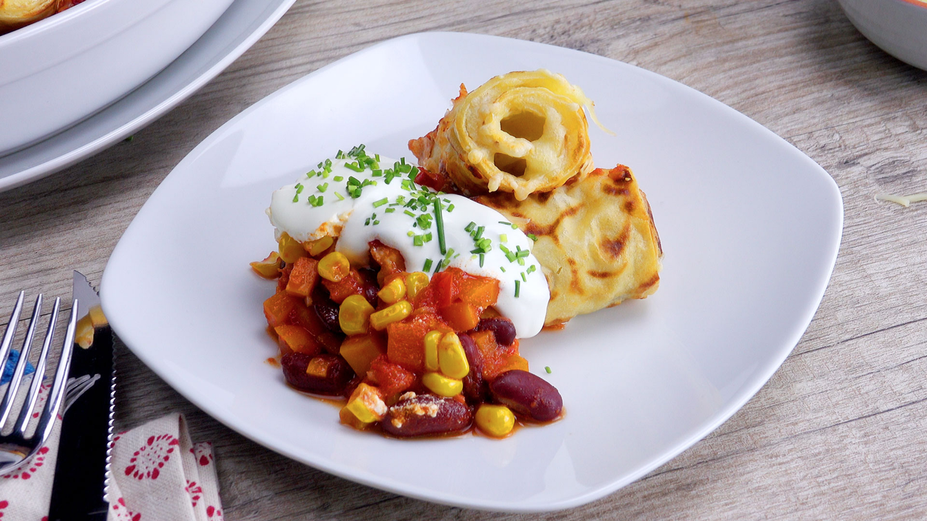 Bei diesem Mahl dürfen Mais und Bohnen nicht fehlen. Die Anleitung gibt es hier.