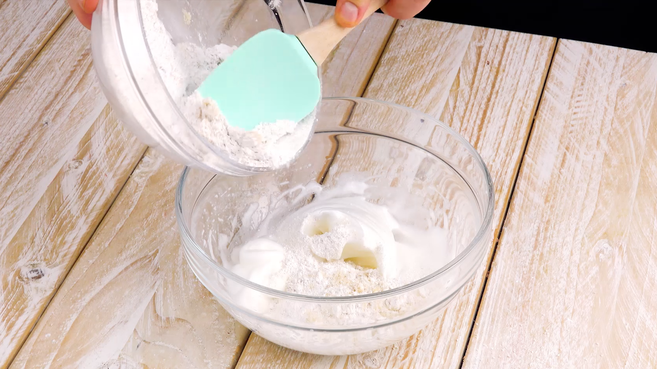 1.) Siebe Mandeln, Puderzucker und Zimt in eine Schüssel. Schlage das Eiweiß steif und füge währenddessen den Zucker zu. Unter die steife Eimasse hebst du portionsweise die Mandelmischung.