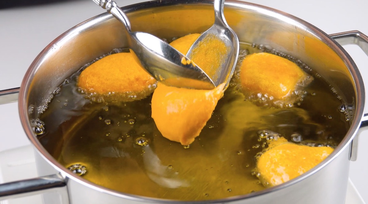 3.) Gib Öl zum Frittieren in einen Topf und gib den Teig portionsweise mithilfe von zwei Löffeln in das Fett.
