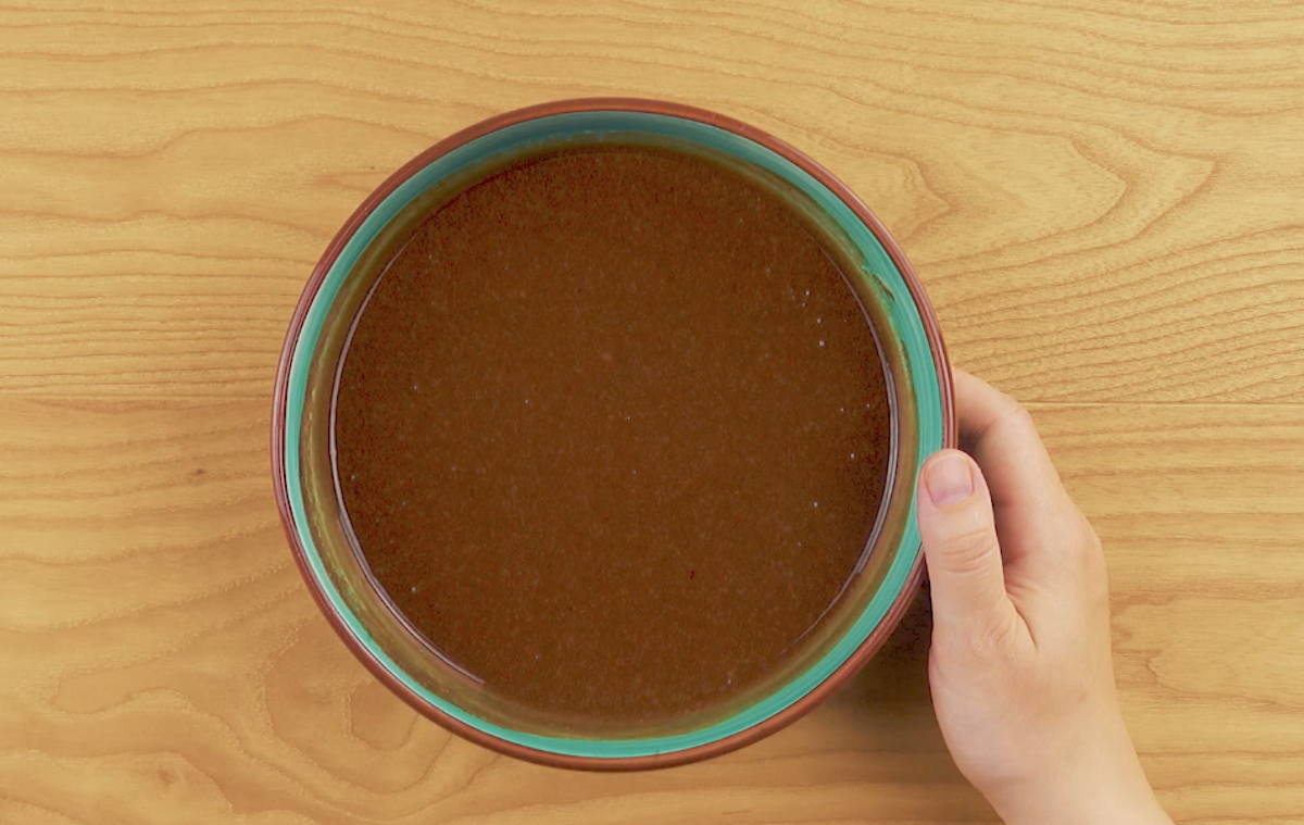2.) Schmilz die Schokolade über einem Wasserbad und füge dabei die flüssige Butter zu. Die Schokoladencreme hebst du unter den Teig.
