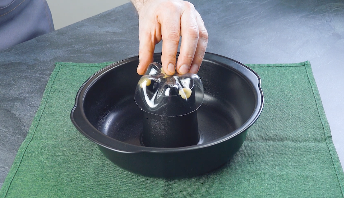 4. Schneide den Boden einer leeren Plastikflasche ab und „klebe“ diesen auf das Marzipan.