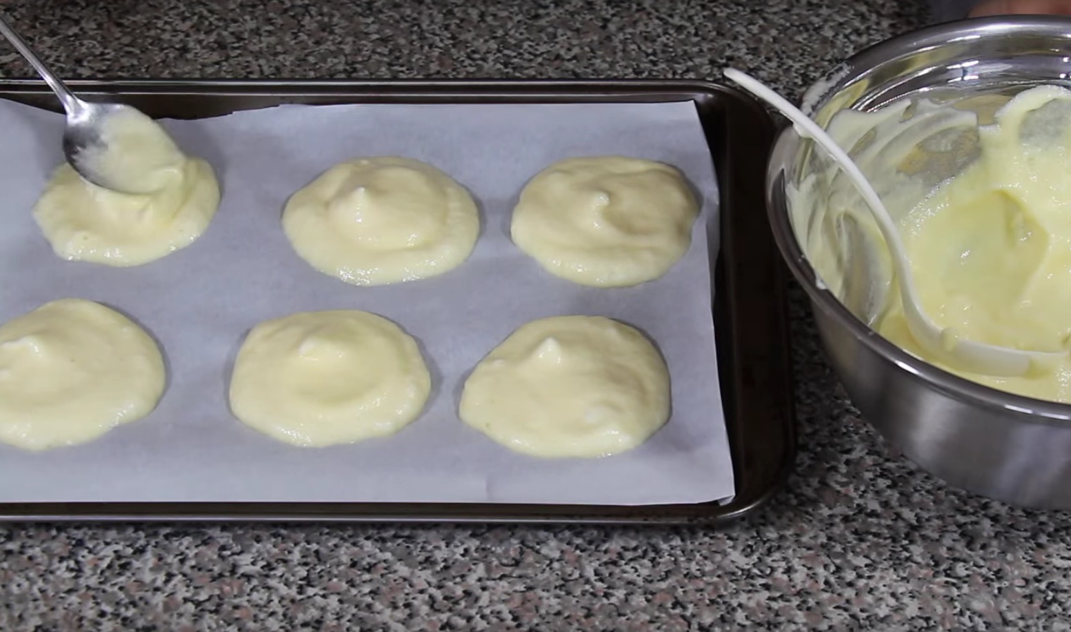 Auf ein Blech mit Backpapier setzt du dann 6-8 Kleckse der Masse.