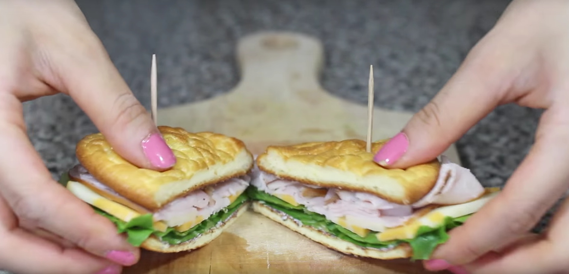 … oder noch viel besser: Ein leckeres Sandwich daraus zaubern! Dazu mit etwas Kräuterfrischkäse bestreichen und nach Herzenslust belegen (Salat, Käse, Schinken). Was du so magst.