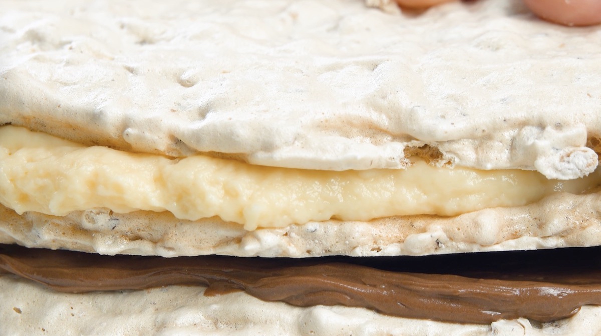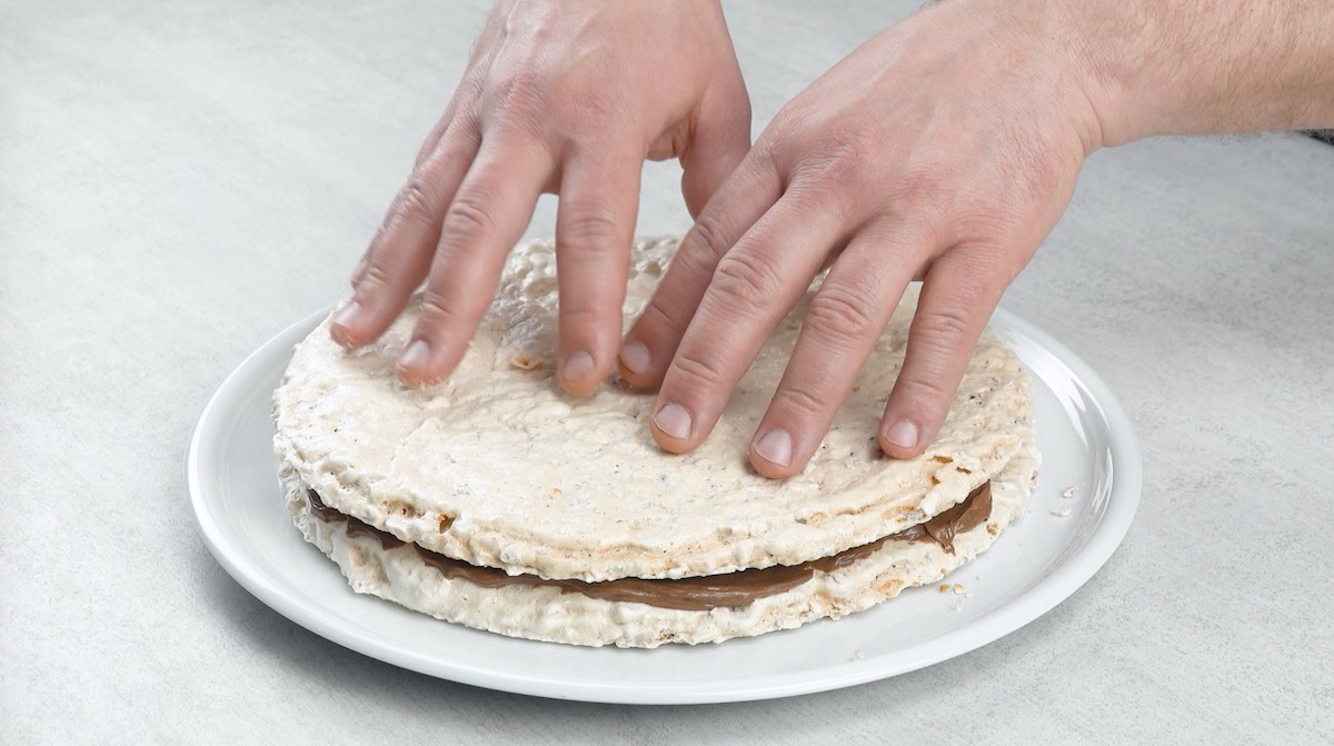 3.1 Bestreiche einen Boden mit Schokocreme und bedecke diese mit dem zweiten Boden.