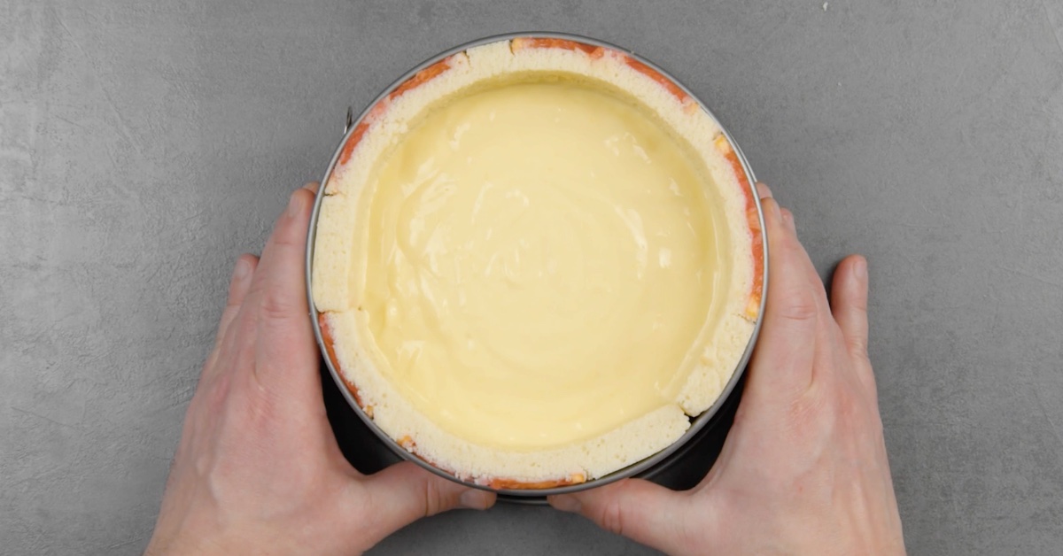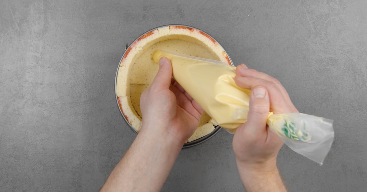 10. Fülle den Kuchen danach mit der restlichen Creme und stelle ihn für weitere 4 Stunden kalt.