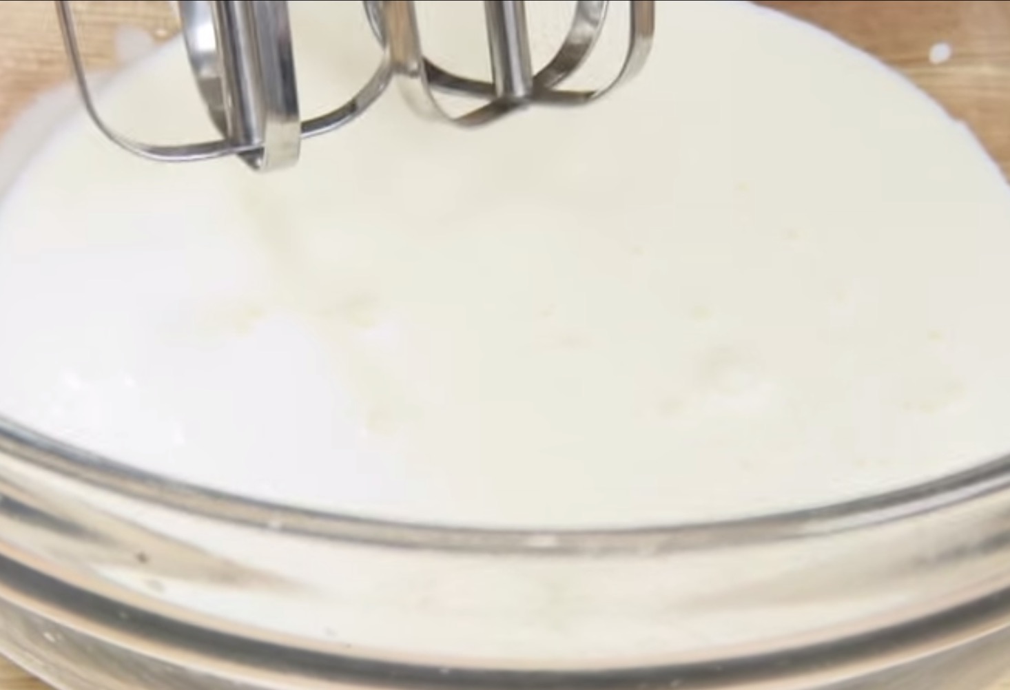 3. Gib 250 ml Sahne in eine Schüssel und schlage sie mit einem Rührgerät, bis sie fest ist.
