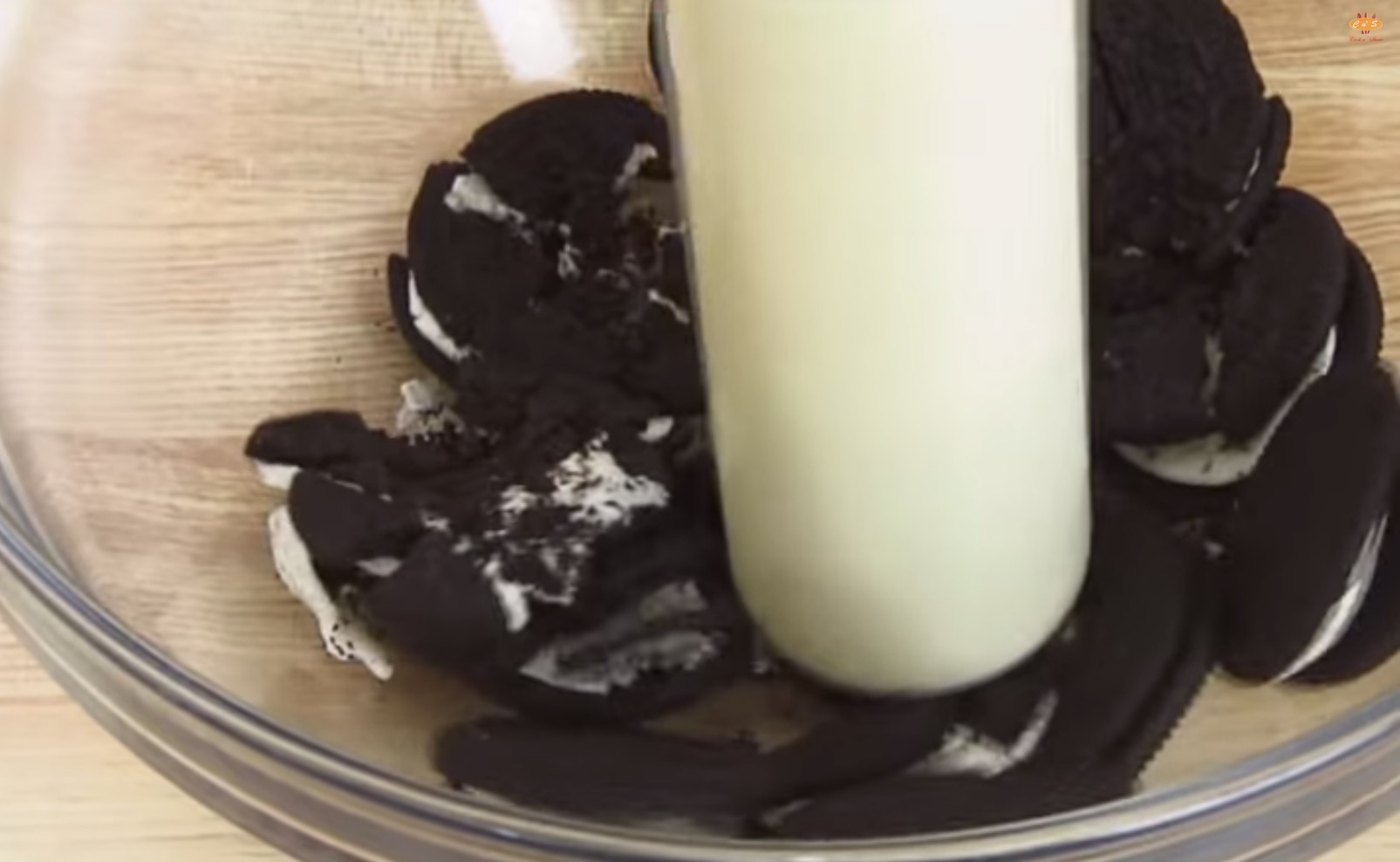 Dieser Oreo-Käsekuchen ist einfach nur köstlich. Und das Beste ist – du brauchst dafür keinen Backofen! Für diesen leckeren Keks-Kuchentraum benötigst du folgende Zutaten: 1 Packung Oreo-Kekse 250 ml Schlagsahne 100 g Frischkäse 2 Teelöffel zerlassene Butter 3 Teelöffel Puderzucker Vanilleextrakt Und so gehts: 1. Gib 8 Kekse in eine Schüssel und zerstoße sie gründlich.