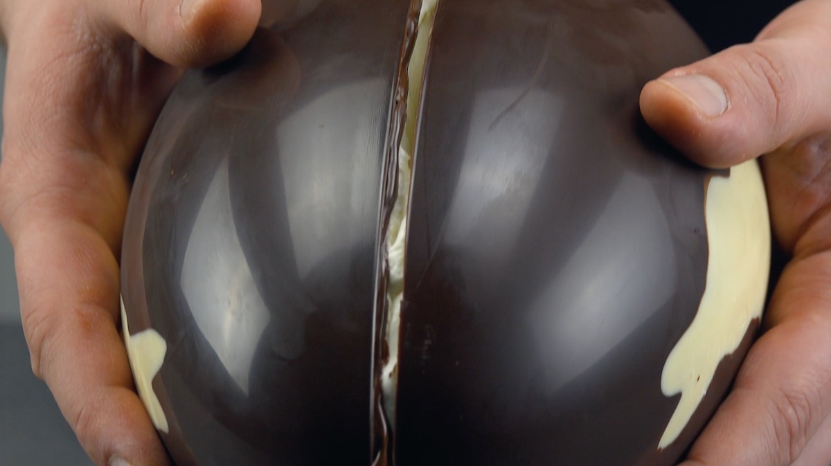 11.) Klebe die Eihälften nun vorsichtig zusammen und warte, bis die Schokolade an der Klebestelle fest geworden ist.