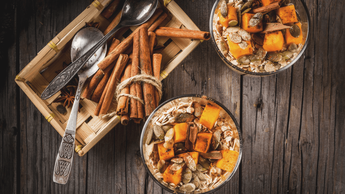 Für einen gesunden Start in den Tag: Overnight Oats mit Joghurt und Kürbis