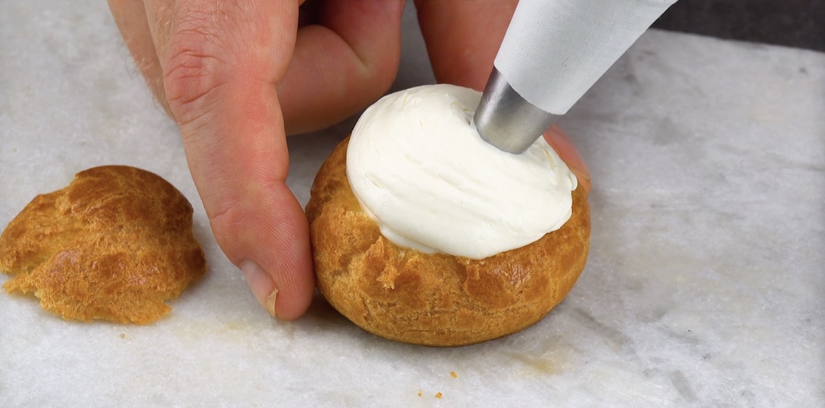 1.3) Spritze Sahne in die Windbeutel.