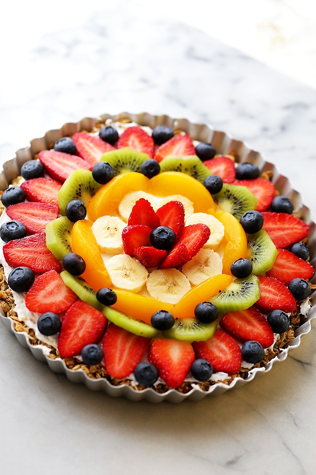 Darin sind sich viele Menschen einig: Pizza schmeckt warm und kalt – und es darf schon mal die alte Pizza von gestern Abend zum Frühstück geben. Falls das nicht so dein Fall ist oder du Lust auf eine ganz andere Art von Pizza hast, könnte dich diese rundum gesunde Obstpizza mit Frischkäse und Müsli begeistern.