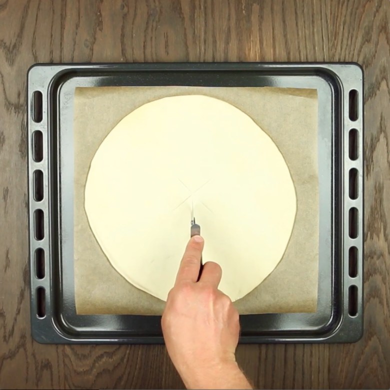- In der Mitte mit einem Pizzaroller einen kleinen Stern schneiden, in Form etwa wie dieser hier: *